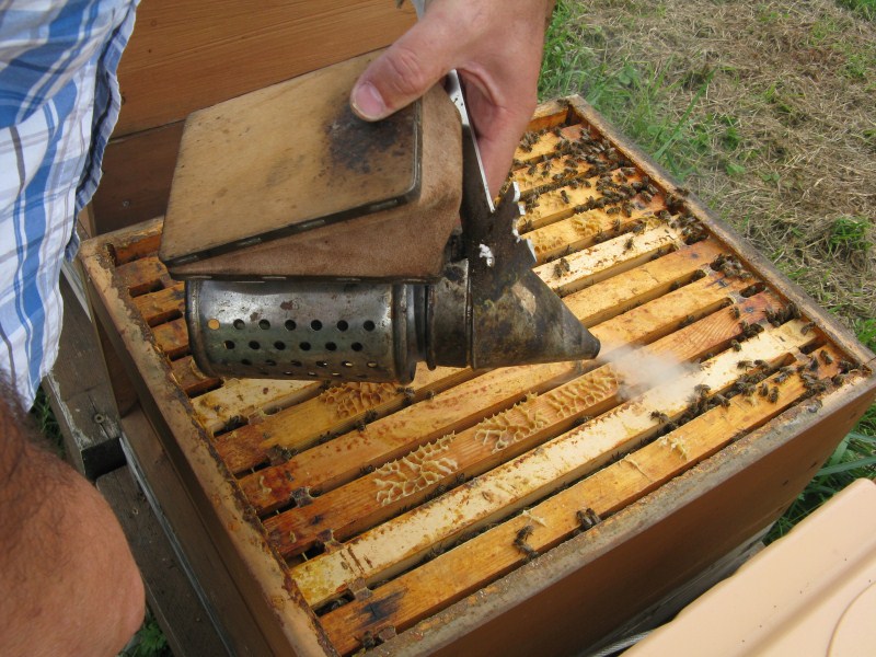 hafif duman verildiğinde arılar geri çekiliyor ve bende